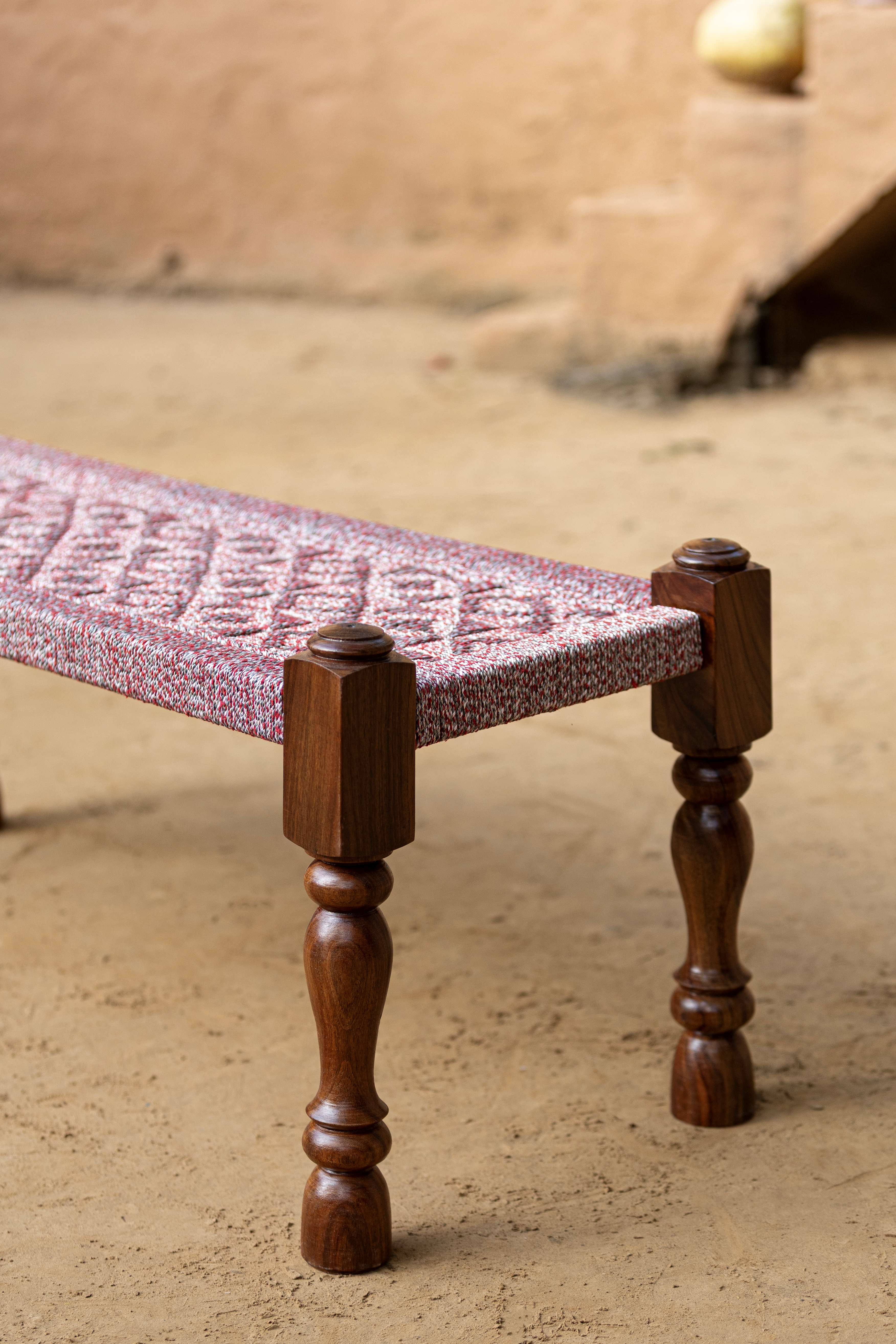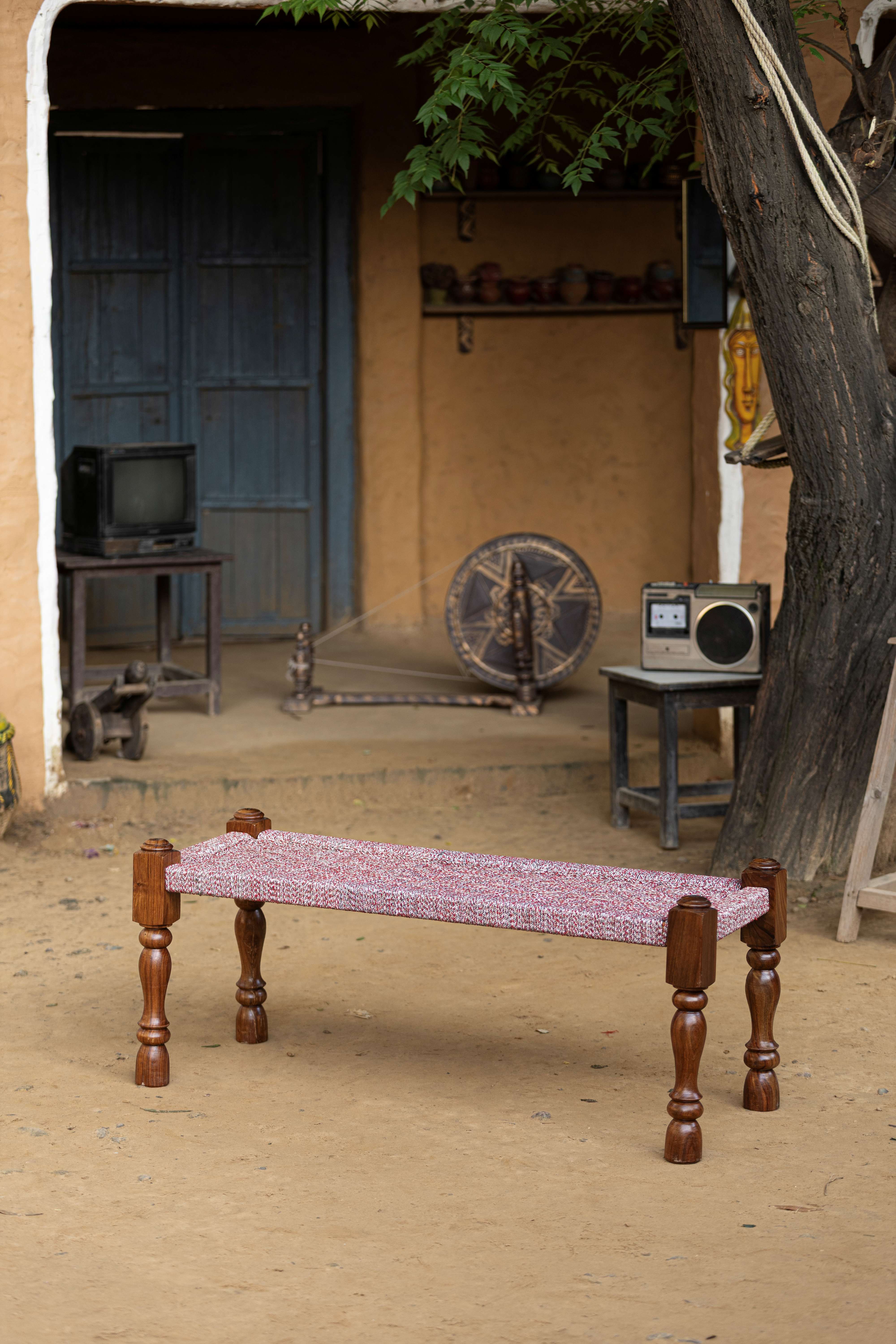 Bring a touch of Punjabi tradition into your home with this beautifully handcrafted Manji Bench. Made with solid wooden legs and a handwoven jute and cotton seat, this piece blends rustic charm with modern simplicity. Each bench is meticulously woven by skilled artisans, preserving age-old craftsmanship that’s both durable and full of character.