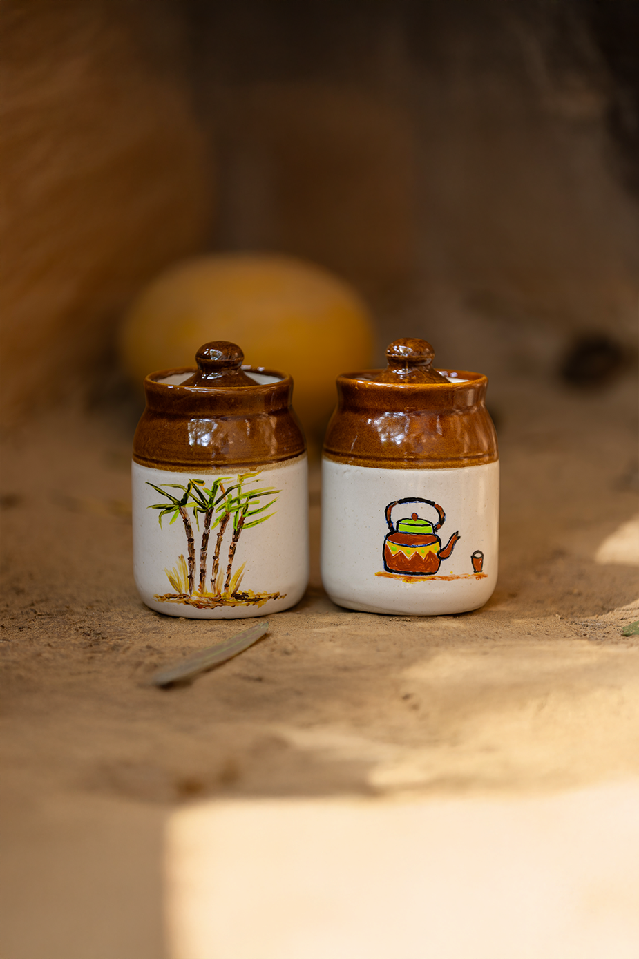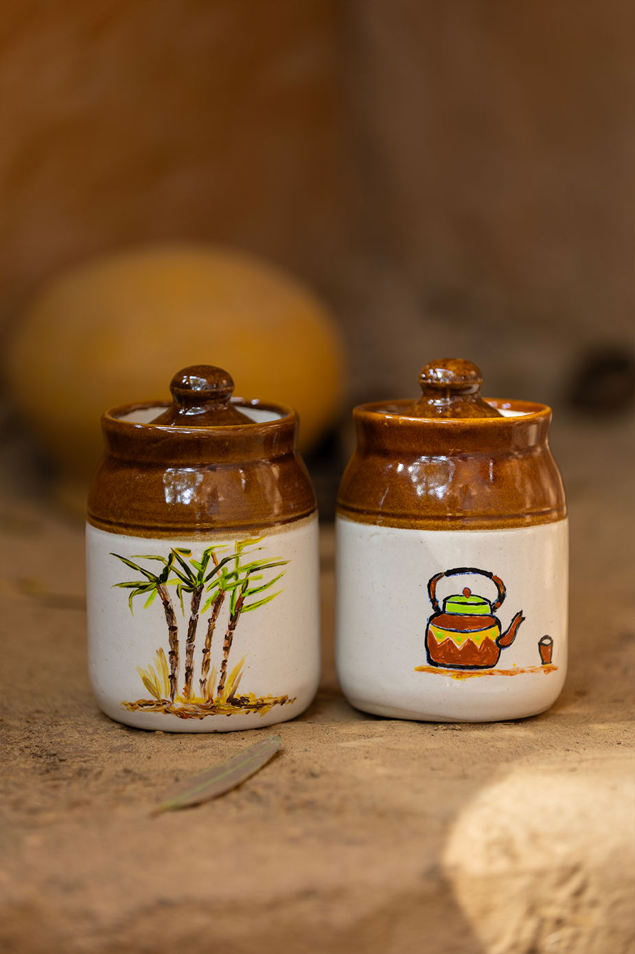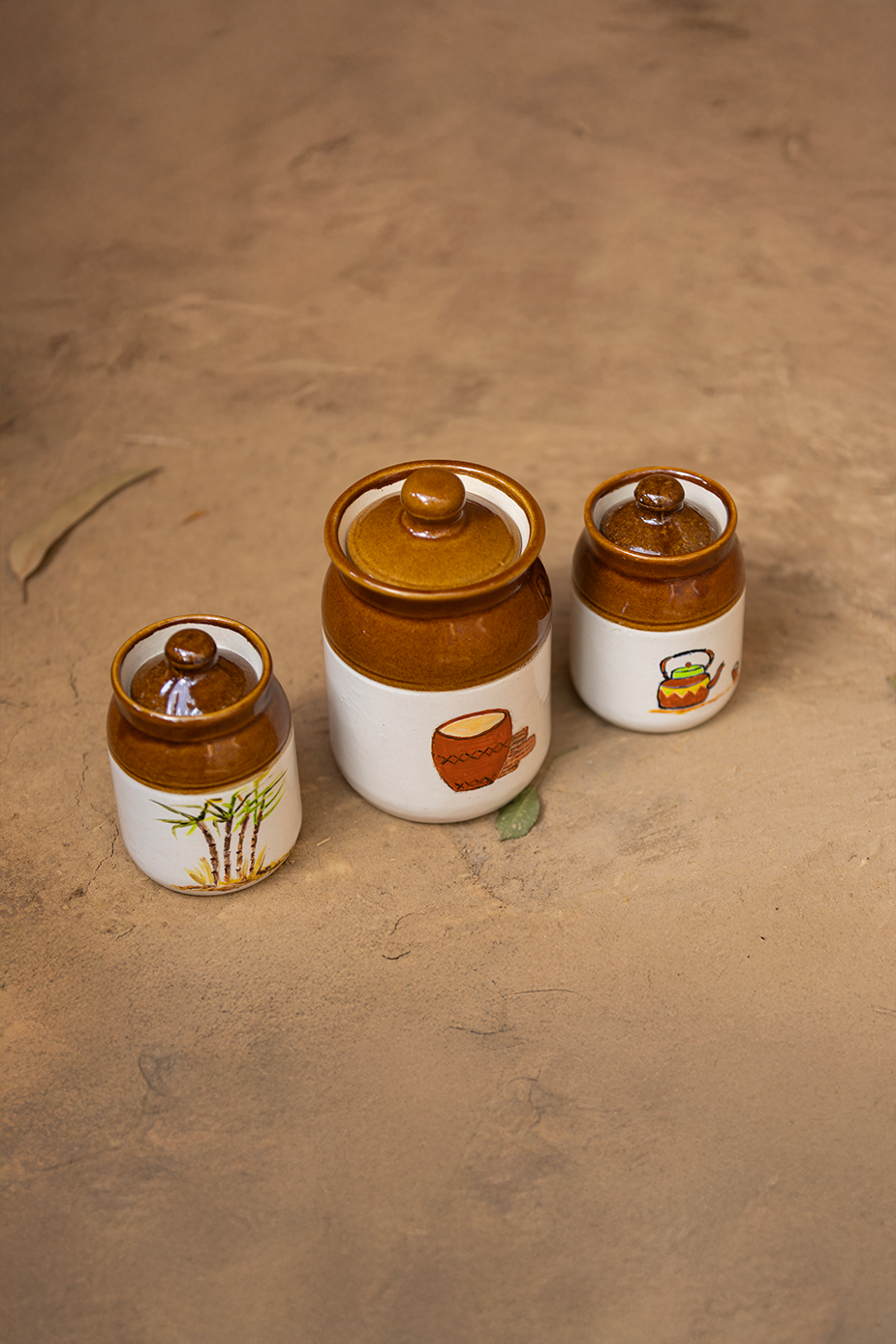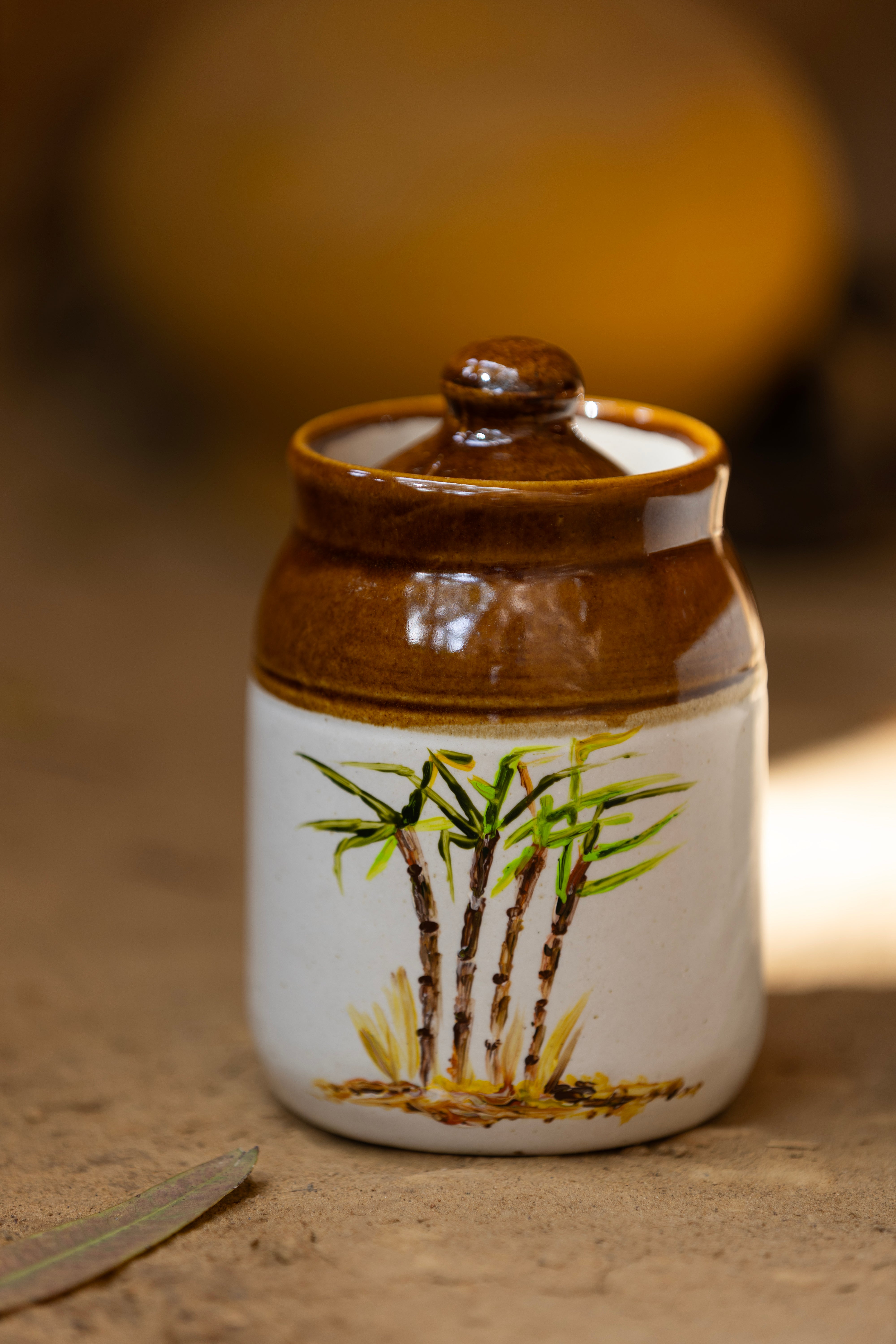 Our set of three handcrafted ceramic jars is made by skilled Indian artisans using top-quality materials and precise craft techniques. Each jar is hand-painted with care, giving it a warm and traditional look. The jars are easy to wash and perfect for daily use. You can use them to store pickles, sugar, cookies, or any other snacks. Their earthy colors and artistic design add a touch of Indian charm to your kitchen while keeping your food items fresh and neatly organized.