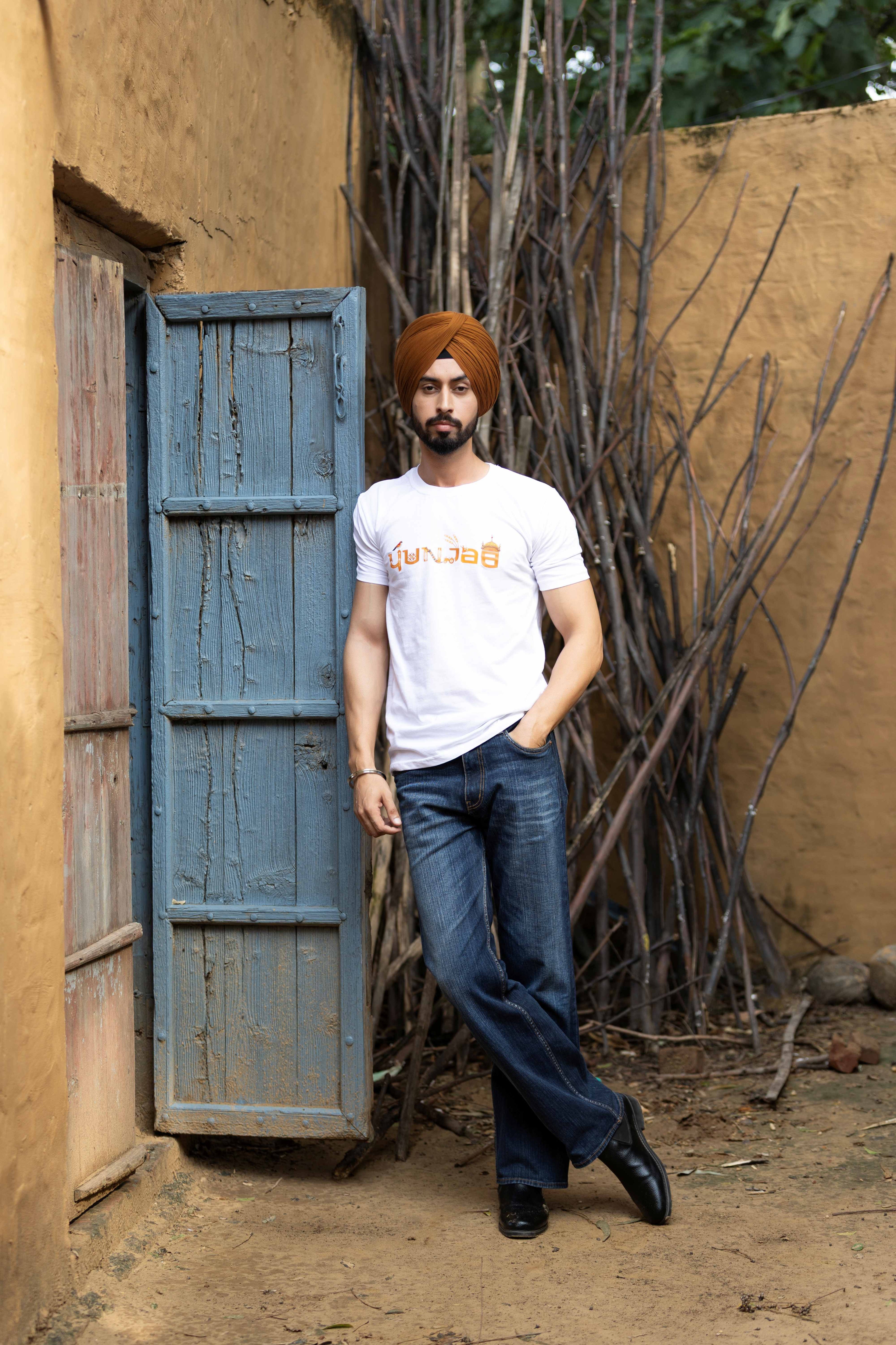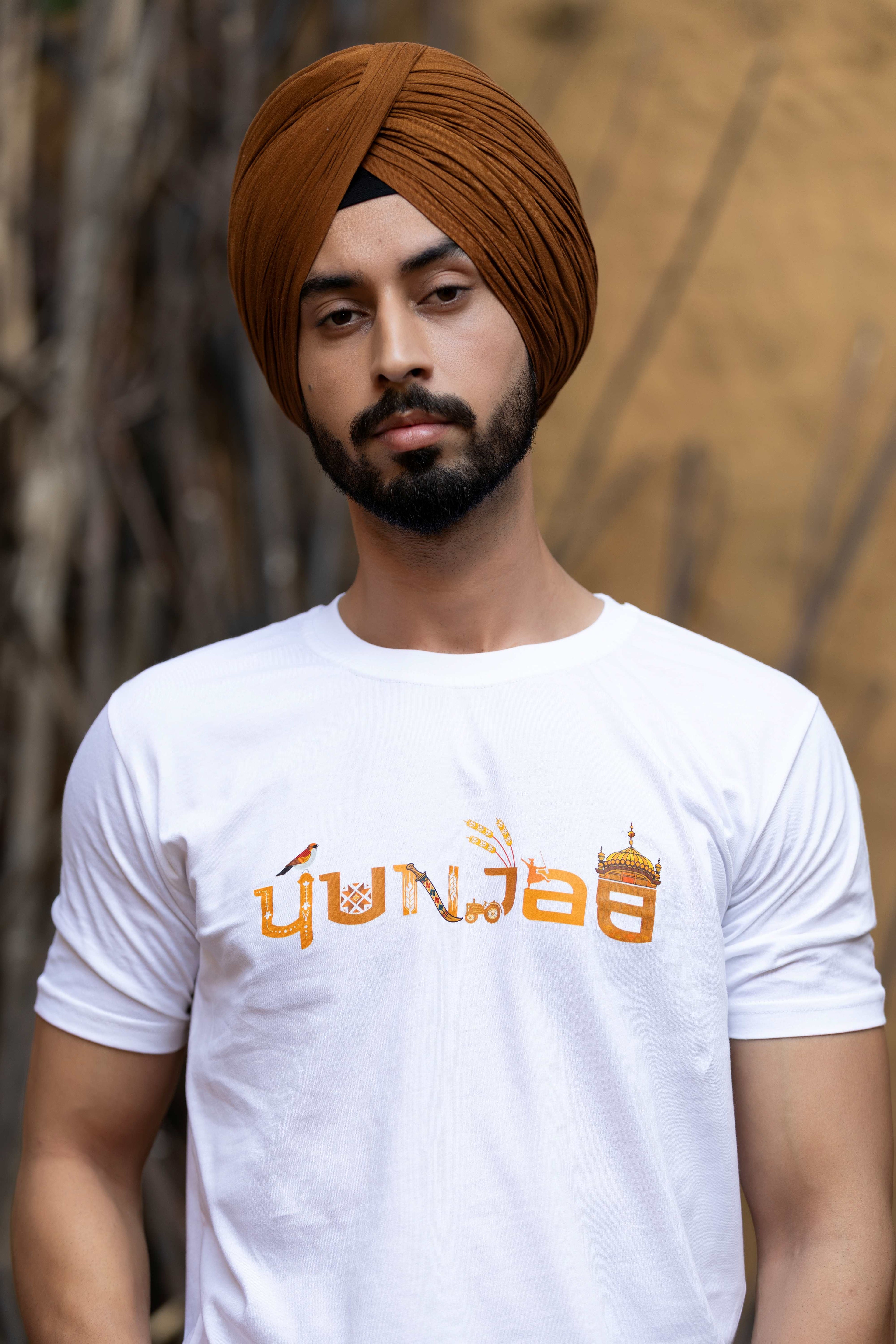 Celebrate the vibrant essence of Punjab with our Soul of Punjab t-shirt, crafted from soft, breathable cotton-blend fabric. The design beautifully spells “Punjab” in Gurmukhi script, featuring symbolic elements like the state bird (baz), phulkari patterns, dhol, tractor, wheat stalks, and Golden Temple dome, each representing Punjab’s culture, faith, and agricultural spirit. Perfect for casual outings or cultural gatherings, this tee radiates regional pride with timeless charm.