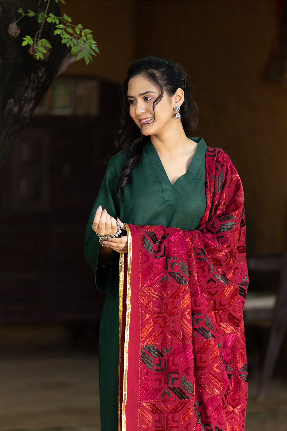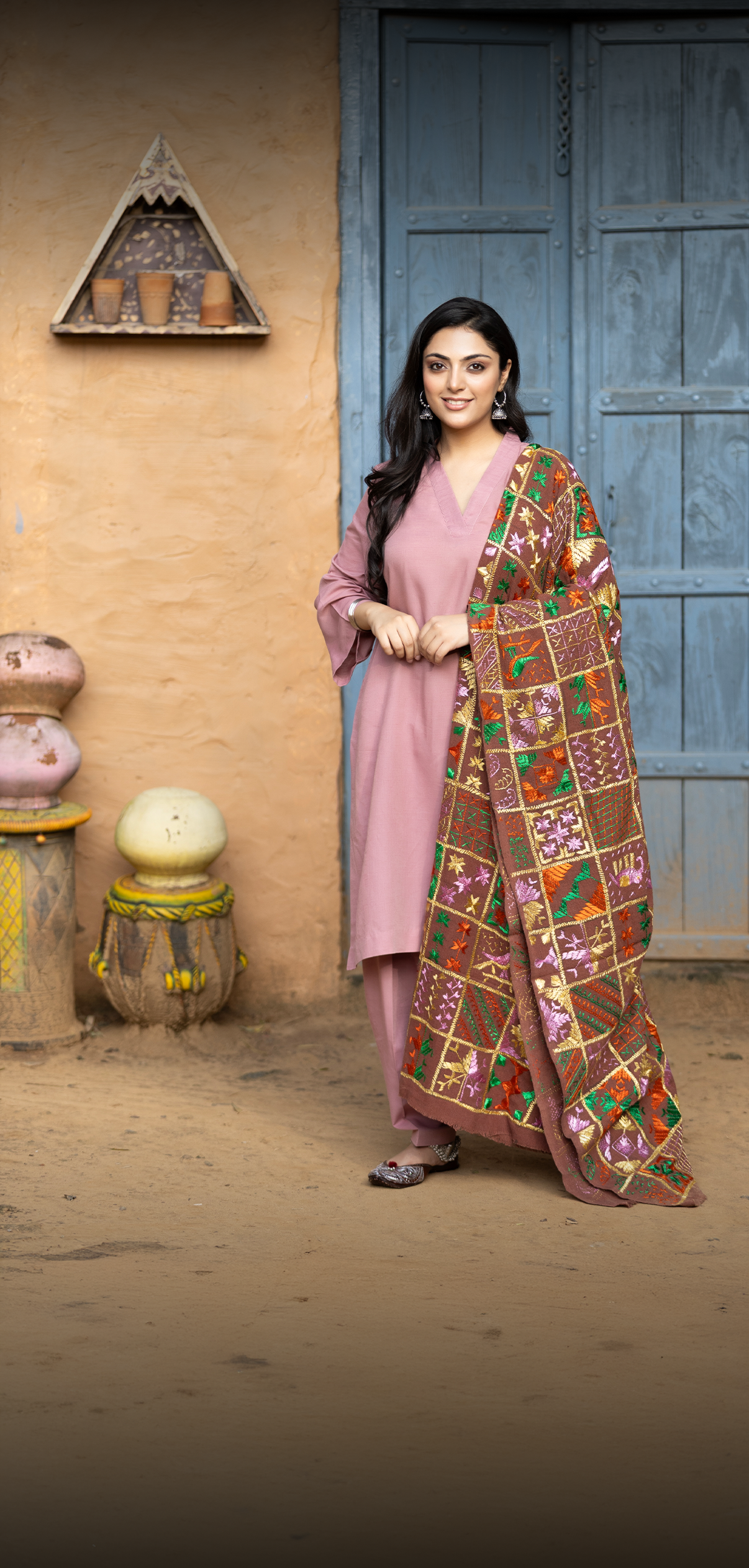 Phulkari dupattas are handmade with colorful threadwork, celebrating Punjabi heritage. Each piece is bright, unique, and perfect for adding cultural charm to any outfit.