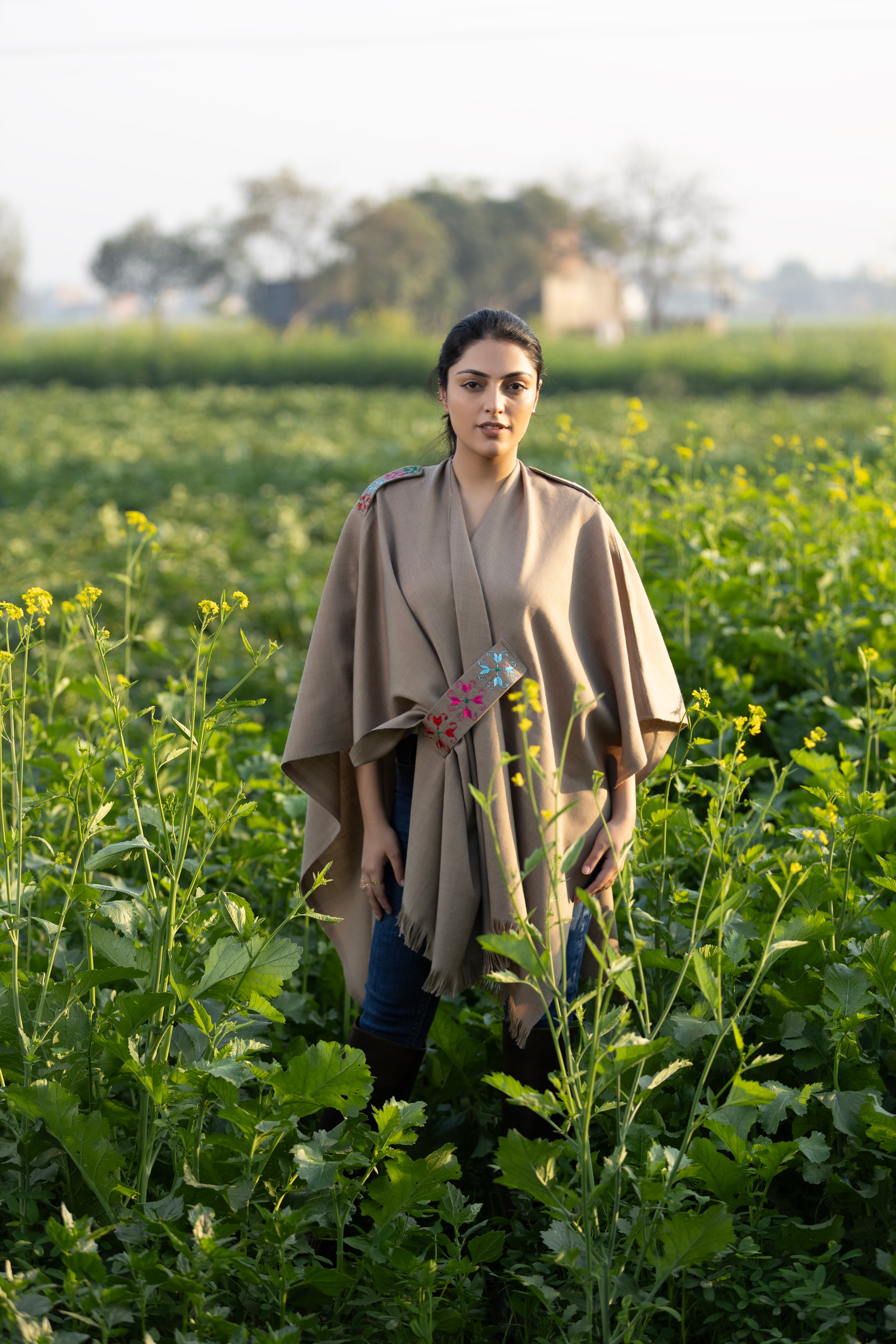 Saanwal Lohi Cape is a modern, elegant shawl in a rich brown tone. Soft to touch and easy to style, it adds warmth without feeling heavy. Perfect for everyday wear or special outings, this shawl pairs beautifully with both traditional and contemporary outfits.